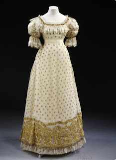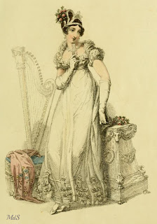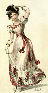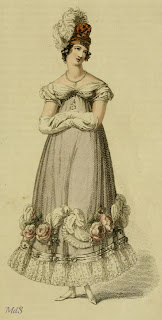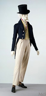 Nos primórdios da Era Romântica (inclui-se aí parte da Regência), o vestido feminino tinha forma tubular e era enfeitado com babados. Já a moda masculina vivia o auge da era dândi, de peito com enchimento, calças justas de cintura alta e cartola, o primeiro padrão vitoriano do homem cheio de si.
