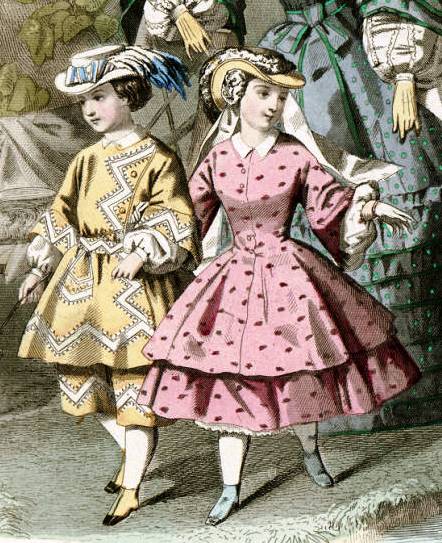 Vale lembrar que as meninas usavam saias com crinolina como suas mães, com a diferença importante que suas saias eram curtas, ao invés de longas. Na década de 1870 e 1880, saias estreitas tornaram-se populares.