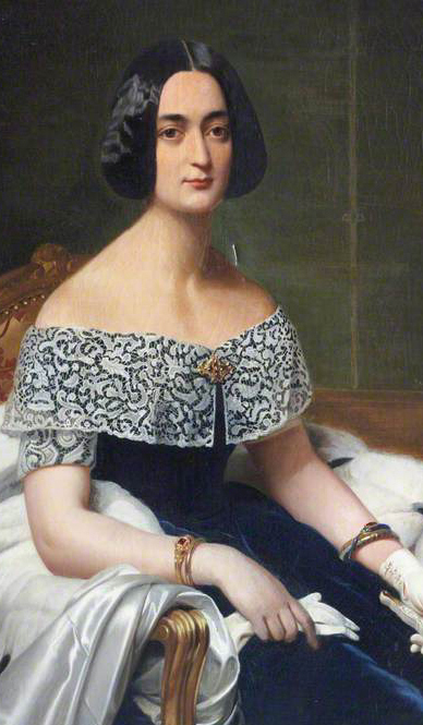 A imagem abaixo compara a moda romântica com o retrato de Leonora di Garzia di Toledo de 1555. Reparem na similaridade das mangas, no corte pontudo do corpete e no formato da saia.